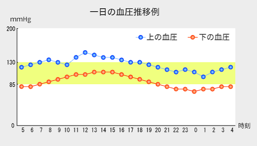 一般的に、朝起きて少しずつ上がっていき、日中で上昇し、睡眠時に下がります。しかし、睡眠時無呼吸症候群だと、夜になっても血圧が下がらずに上昇してしまうことがあります。そして夜間の血圧が高くなると、血管に負担がかかり、だんだん傷ついてもろくなっていきます。心臓にも大きな負担がかかります。